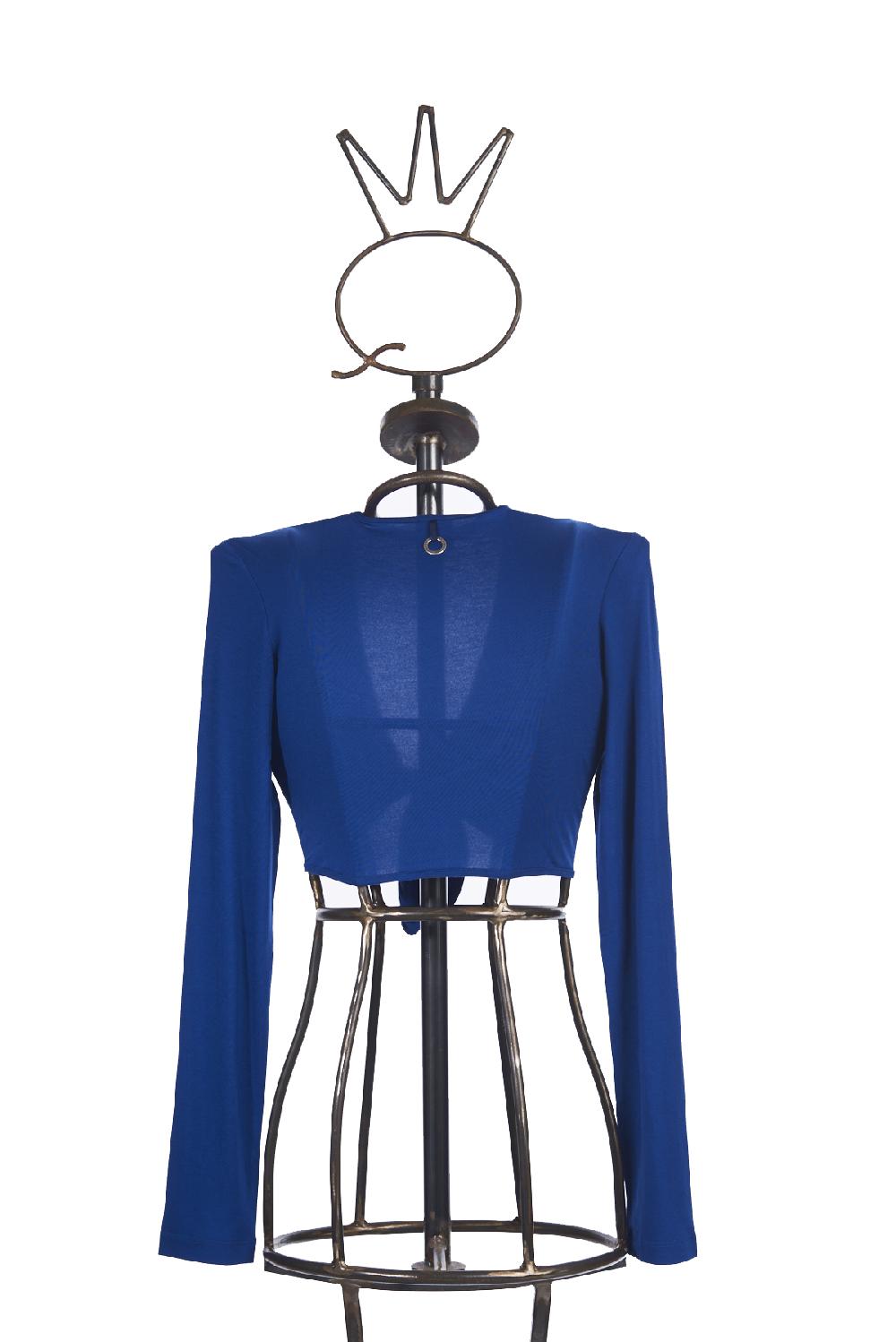 Un coprispalle realizzato in jersey unito bluette. Si chiude con nodo.
